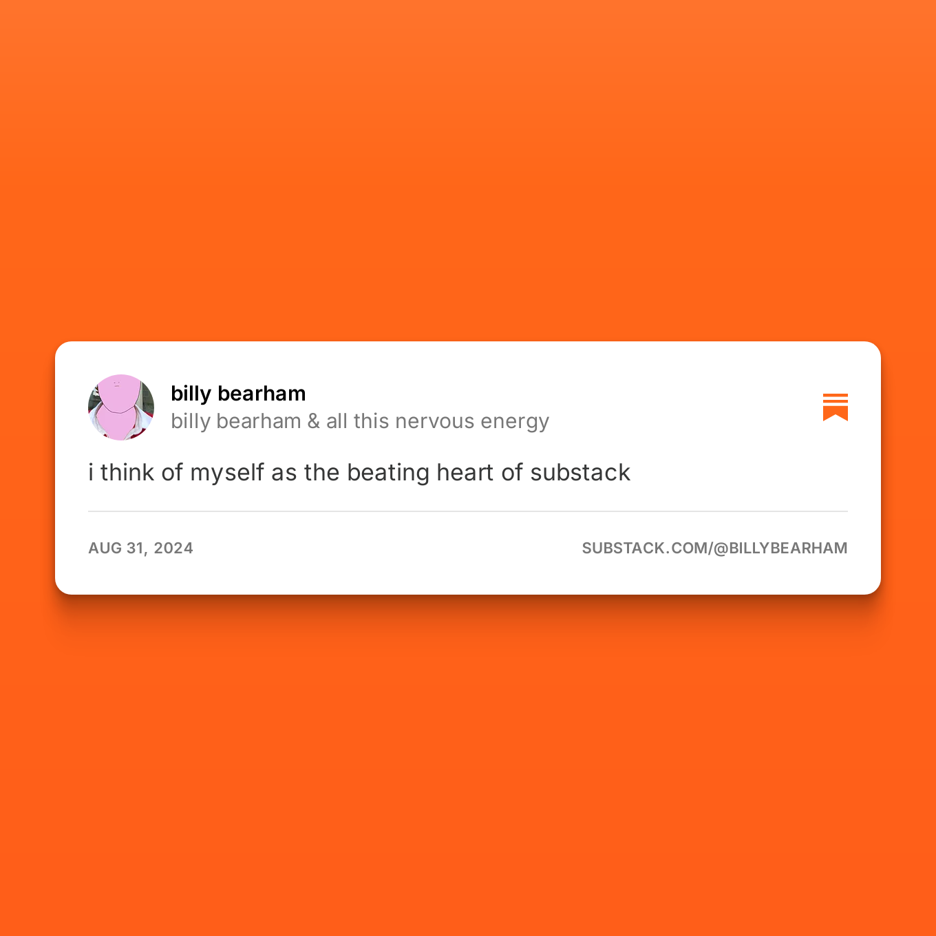 she doesn’t technically use substack but she’s subscribed & one time she had to apologise during a self defense seminar cause she couldn’t stop smiling while the instructor was fake strangling her. i just wanted to put that in here. i think when she told me that might be the hardest i have ever laughed.