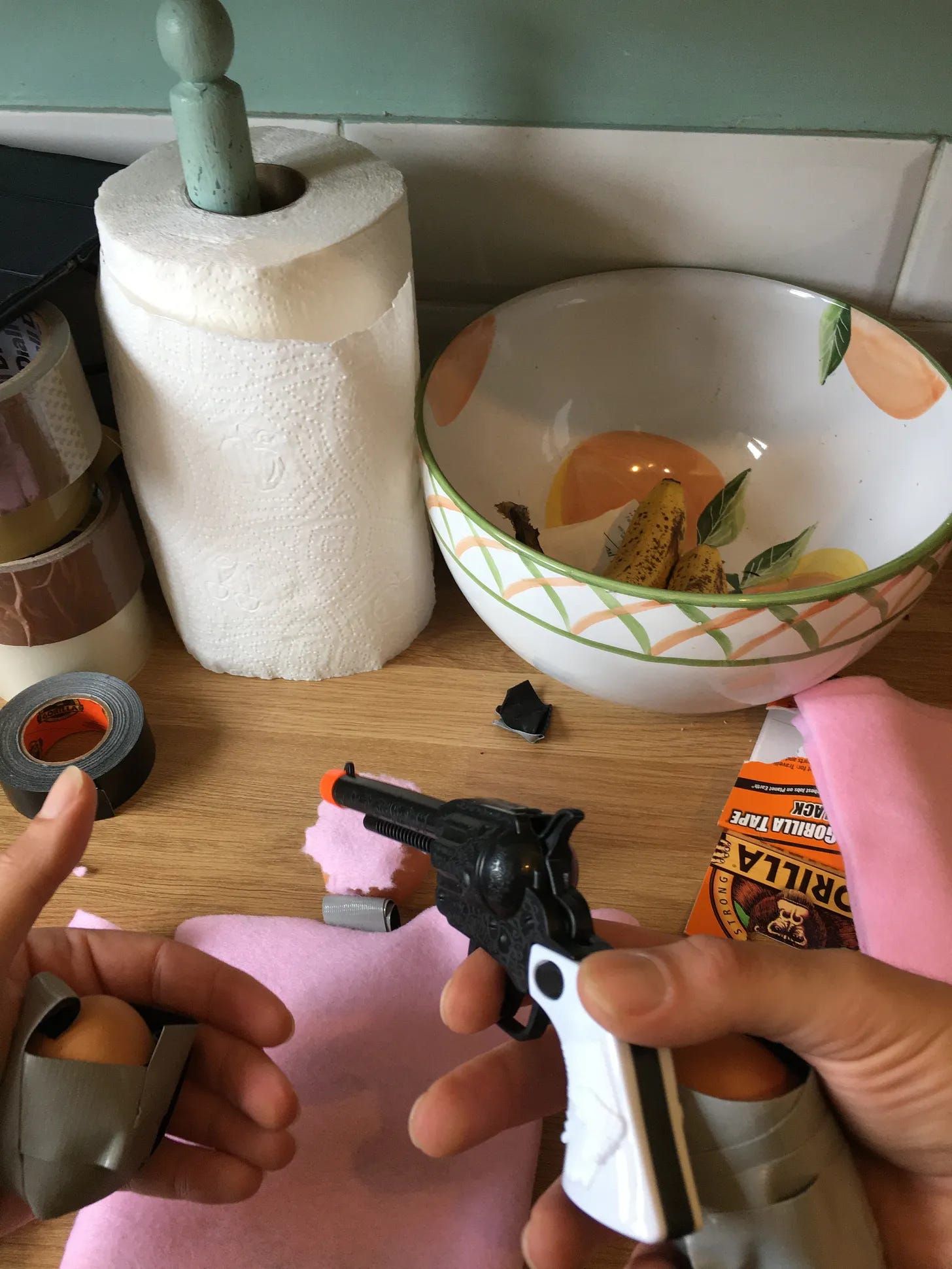 luckily barks is like almost entirely muppet so he just took the gun + put it in his mouth + said it lives in his mouth until class is over.